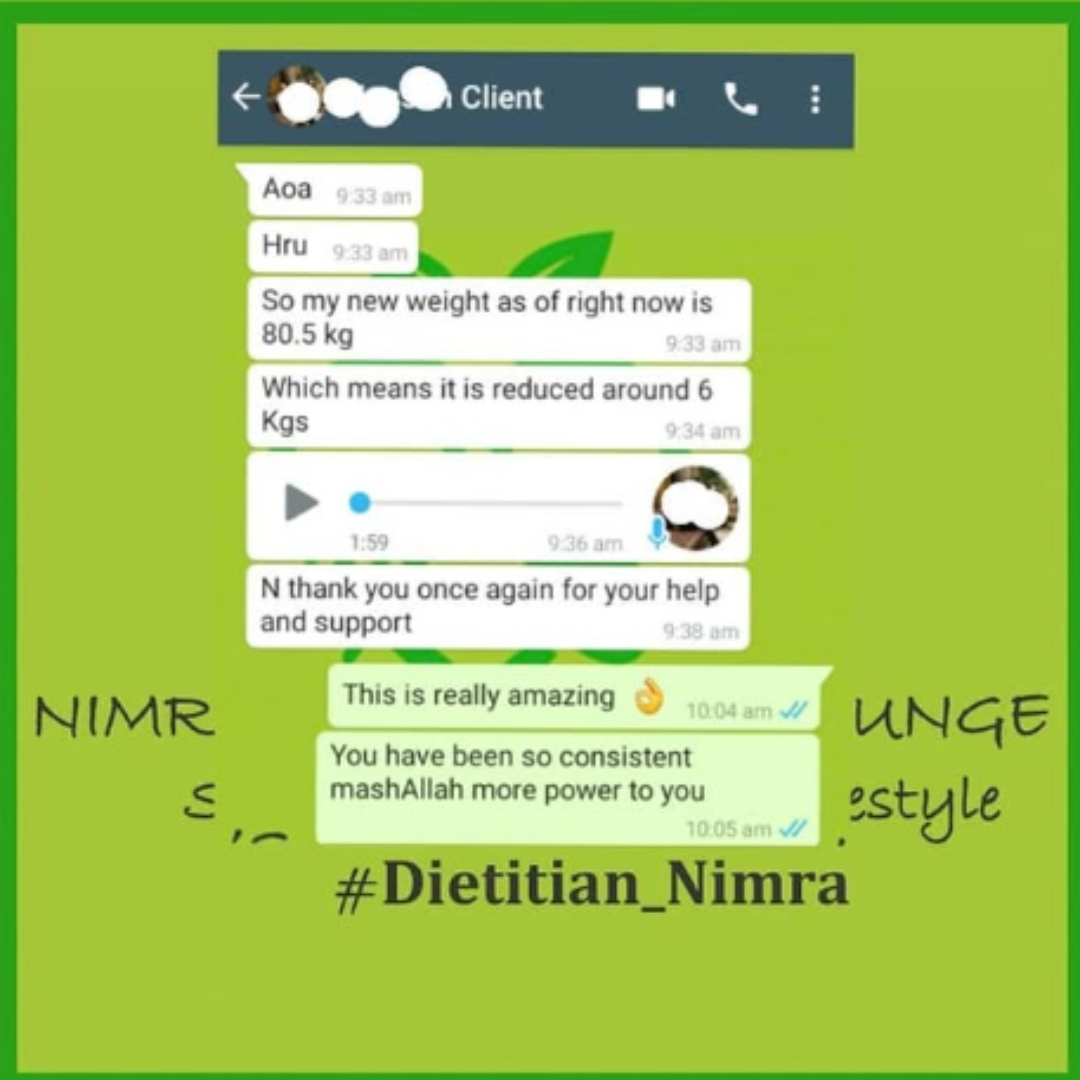 This is a deep-dive session where Dietitian Nimra analyzes your health history, current lifestyle, and weight loss goals. This allows her to craft a plan that is uniquely tailored to your body type and preferences.